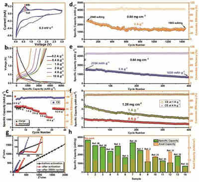 (a)在Si負極上,原位編織超薄石墨炔納米片導電網絡的過程示意圖;