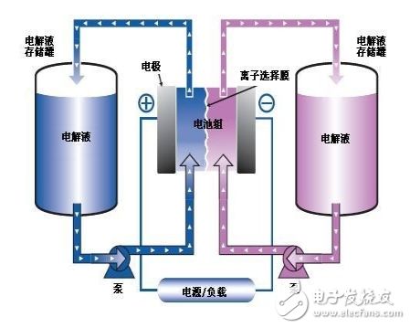 釩電池全稱為全釩氧化還原液流電池(Vanadium Redox Battery,縮寫為VRB),是一種活性物質呈循環流動液態的氧化還原電池。